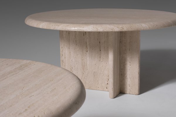 Round Travertine Side Tables Set Of 2 For Sale At Pamono